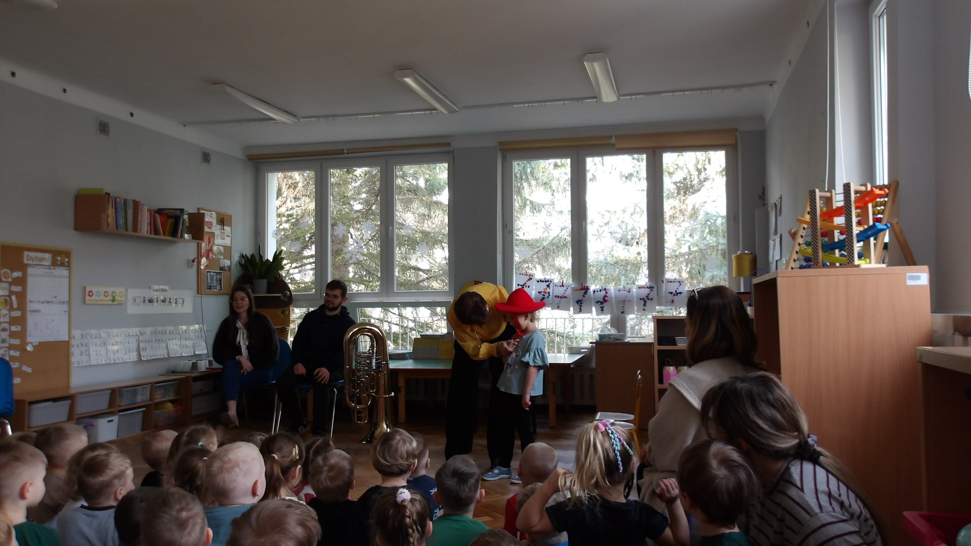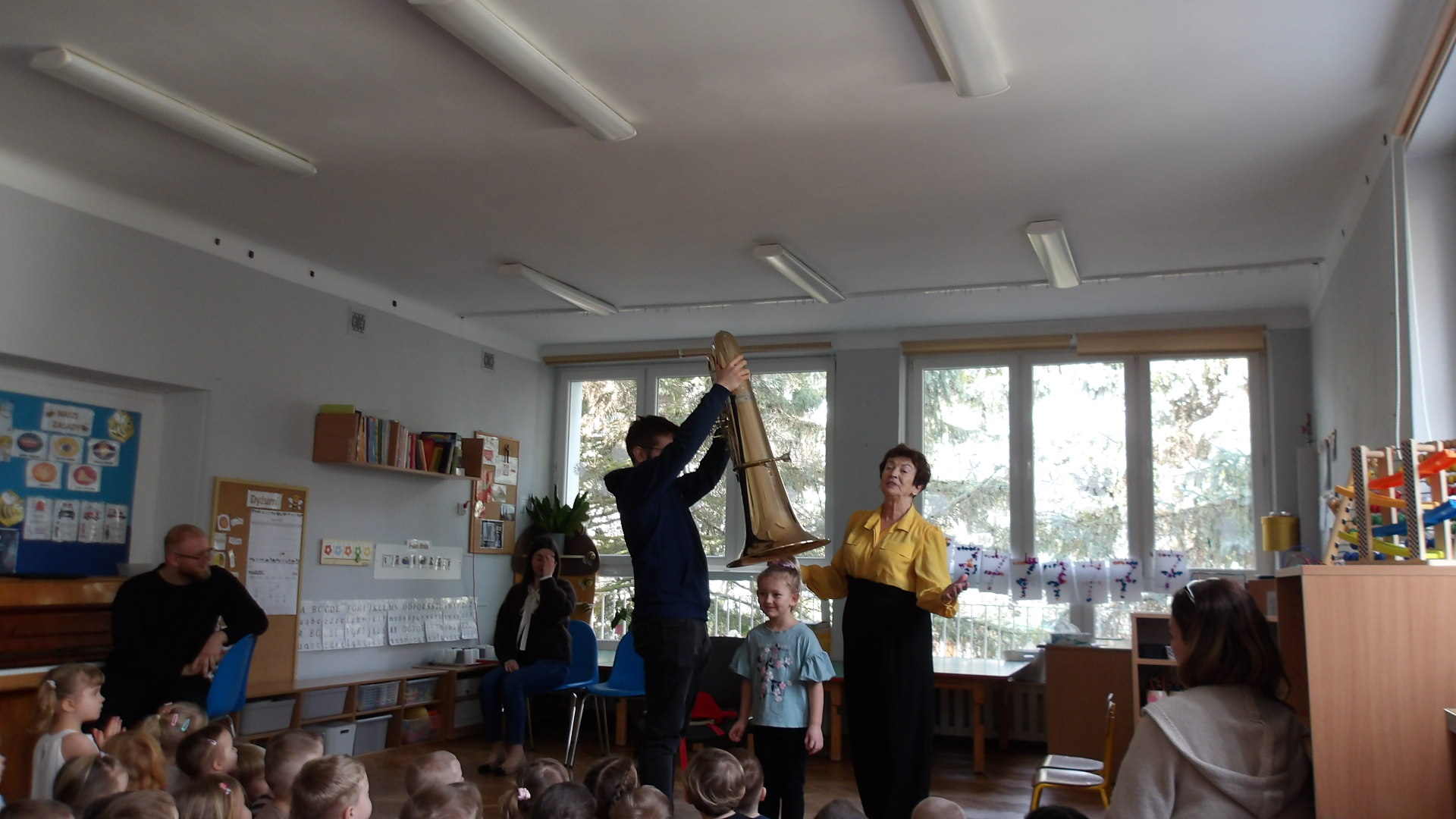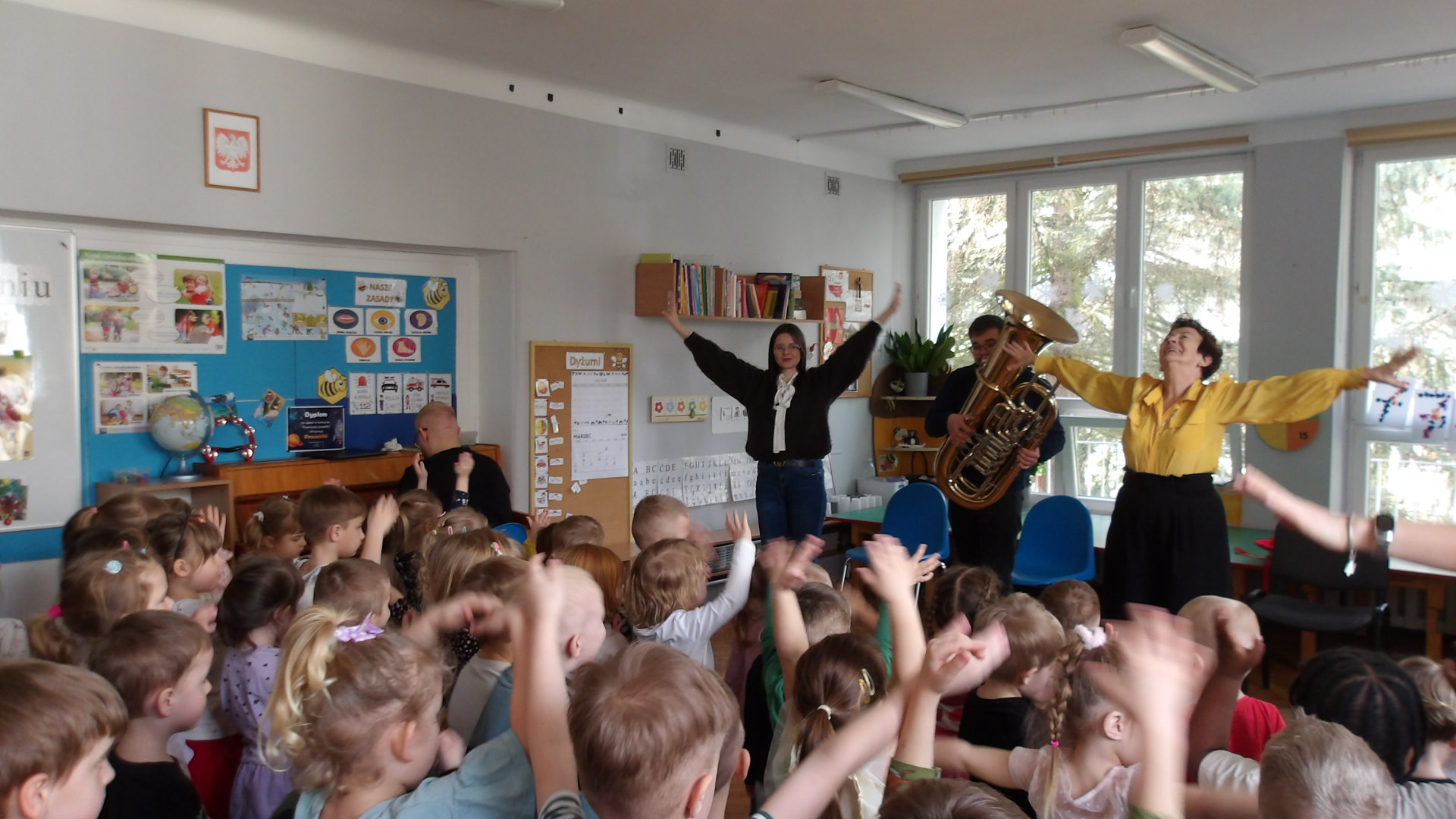 Dnia 27 lutego mieliśmy przyjemność gościć muzyków z Filharmonii Łódzkiej, którzy zaprezentowali dzieciom różnorodność instrumentów muzycznych. Szczególną uwagę zwrócono na tubę - instrument o imponującym brzmieniu. Podczas spotkania dzieci miały okazję zobaczyć tubę z bliska, poznać jej budowę oraz usłyszeć kilka utworów. Muzycy wyjaśnili, jak powstaje dźwięk i jak ważna jest tuba w orkiestrze. Dzieci był zachwycone, gdyż mogły spróbować grać na prostych instrumentach perkusyjnych oraz brać udział w interaktywnej zabawie muzycznej. Wizyta miała na celu rozwijanie zainteresowań muzycznych oraz wprowadzenie dzieci w świat dźwięków klasycznych. Dziękujemy Filharmonii za wspaniałą lekcję i inspirację do dalszego odkrywania muzyki.