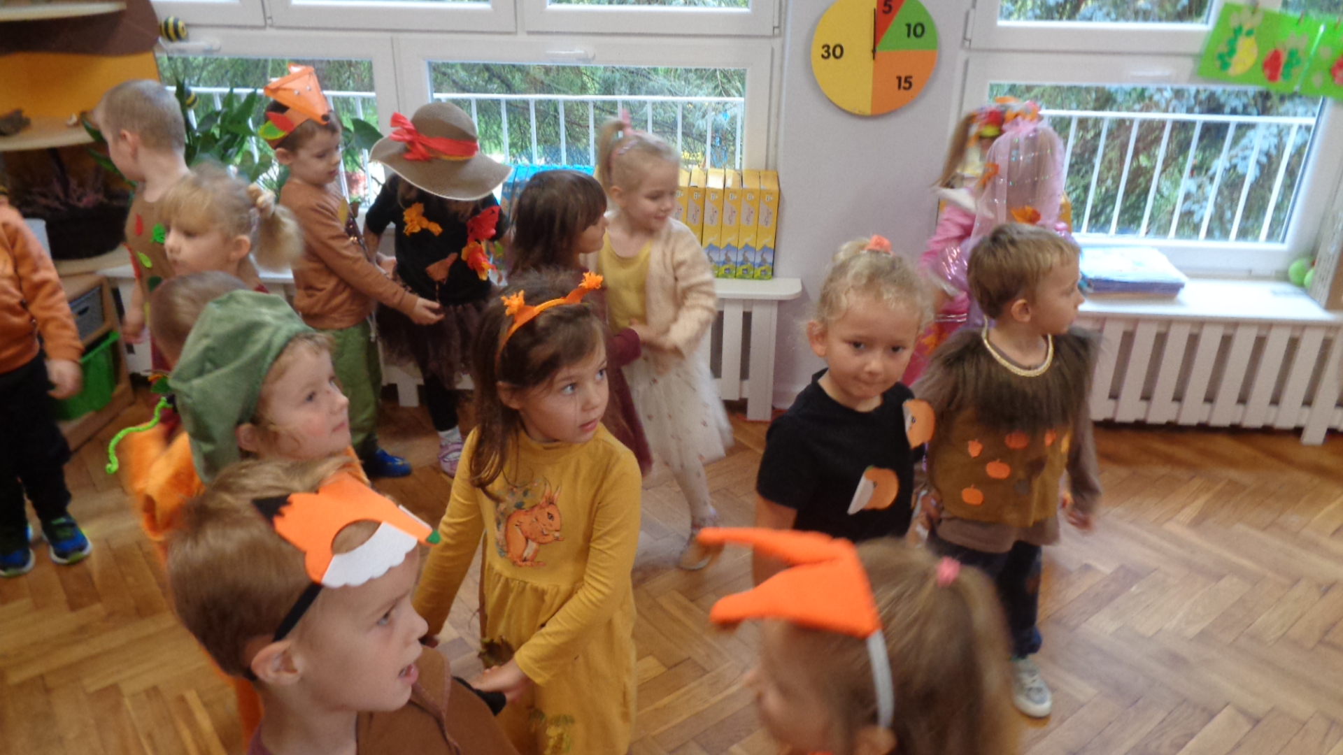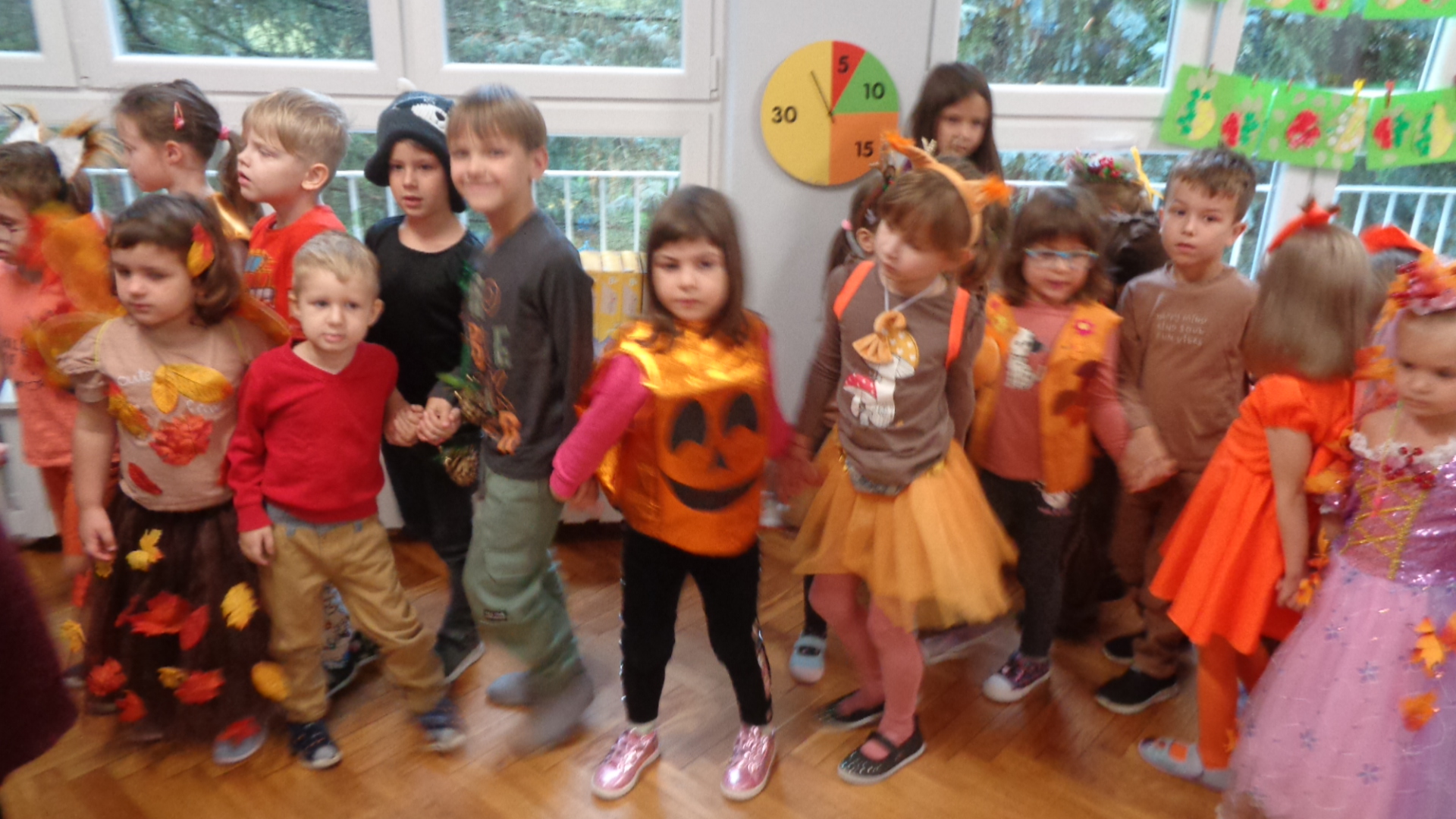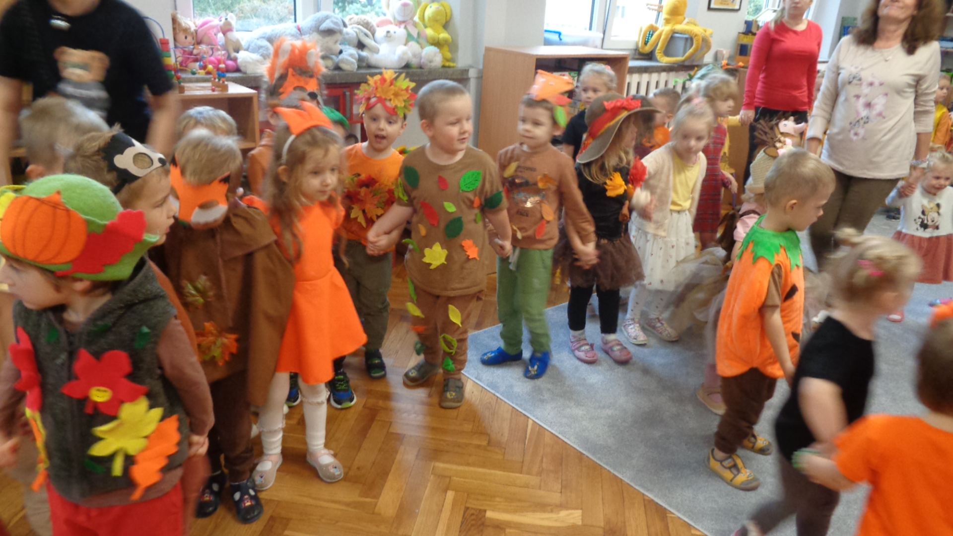 To już jesień, wieje wiatr, strąca złote liście, bo już czas... Tymi słowami wszystkie przedszkolaki rozpoczęły tegoroczny Bal Jesieni. Przy utworze "Cztery pory roku- Jesień" A. Vivaldiego wszystkie dzieci zaprezentowały swoje przepiękne jesienne stroje. Każda grupa rozwiązywała jesienne zagadki oraz brała w jesiennych zmaganiach sportowych. Były wspólne zabawy muzyczno- ruchowe czy pląsy. Bardzo dziękujemy Rodzicom oraz wszystkim bliskim za tak wspaniale przygotowane stroje :)